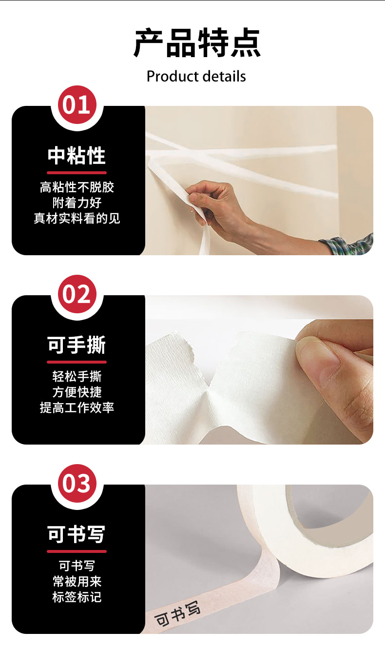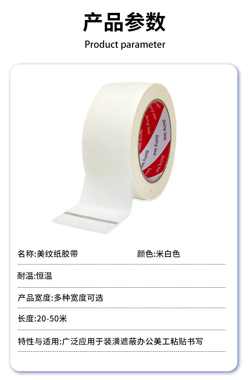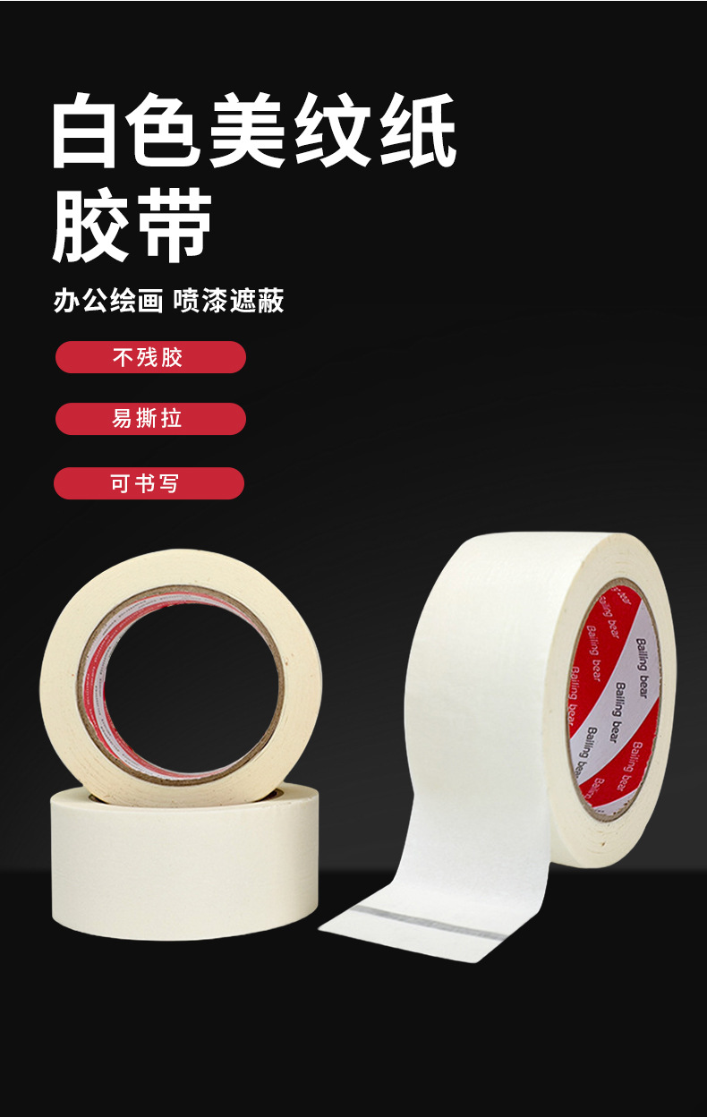 白色美纹纸胶带高粘性墙面装修喷漆遮蔽美纹纸不留胶易手撕分色纸