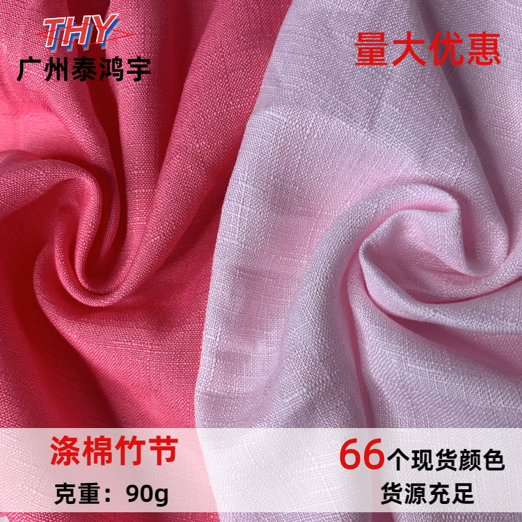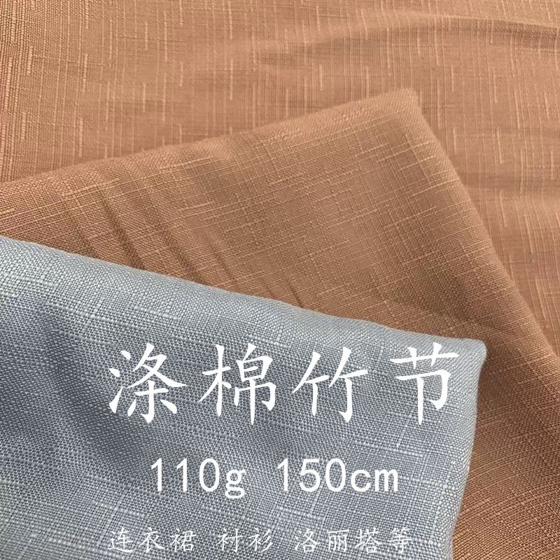 涤棉竹节布料 春夏仿麻人棉弹力竹节布连衣裙童装汉服面料