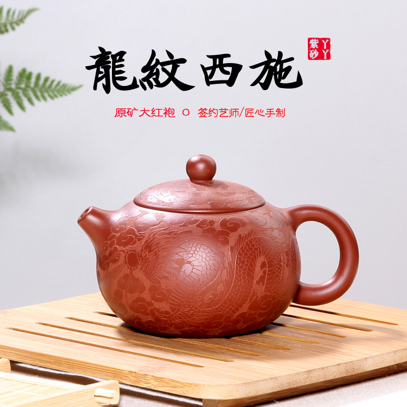 宜興紫砂壺卸売り龍紋西施ティーポット小品大紅袍手作り彫刻工夫茶道具プレゼント