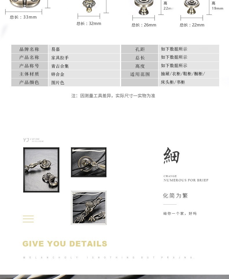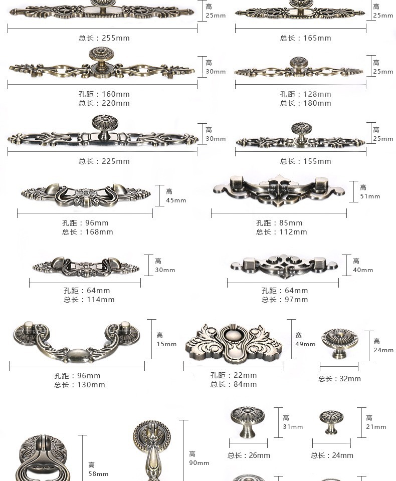 易嘉欧式青古銅色たんすドア取っ手復古新中国式引き出し戸棚下駄箱家具戸棚ドア取っ手