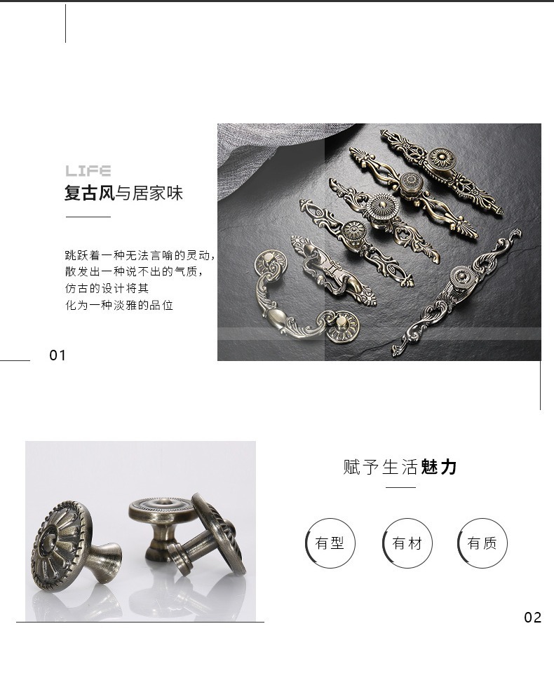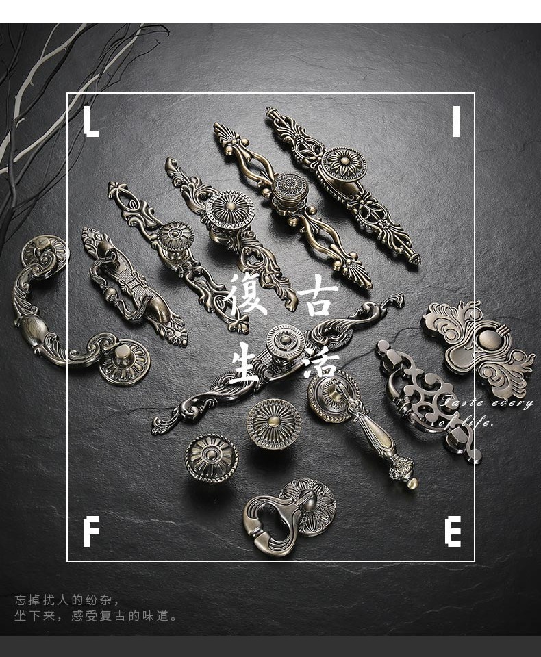 新中国風黄古銅キャビネットドア取っ手亜鉛合金レトロヨーロッパ式引き出しキッチンキャビネット子タンスドアハンドル