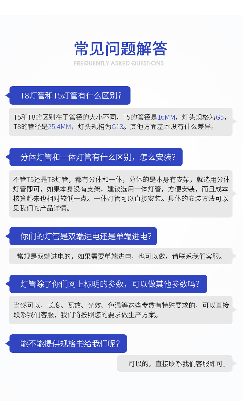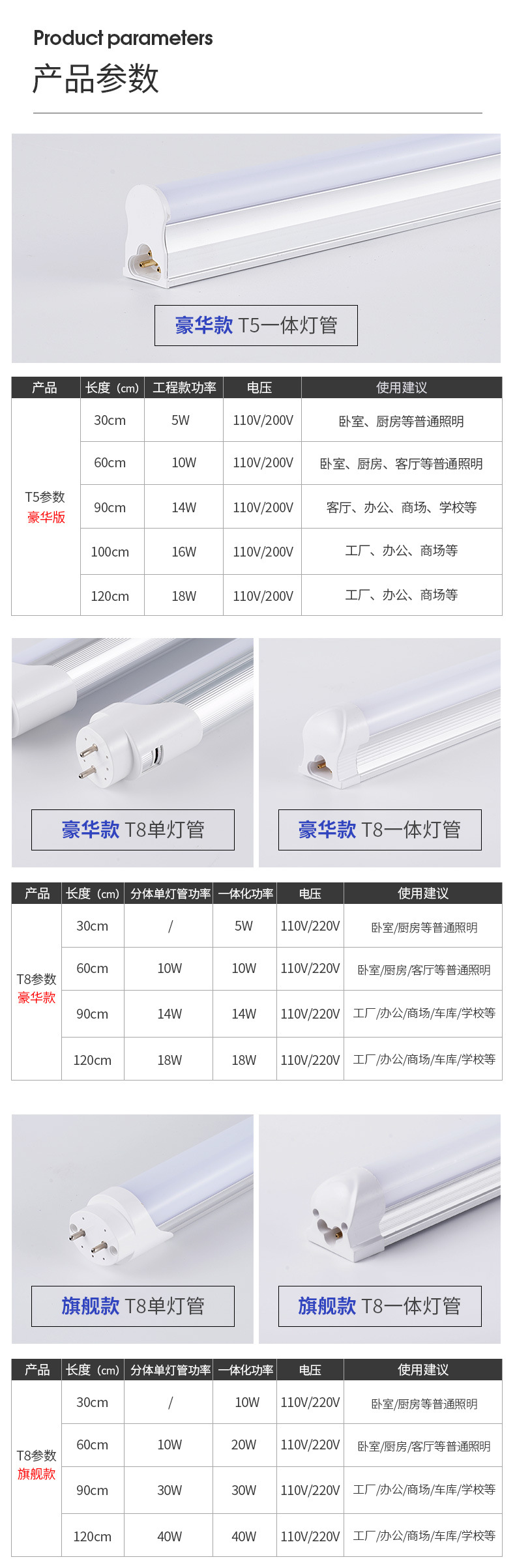 カスタムLEDランプ高さPF幅圧T5一体化t8分体アルミプラスチック高光効率高顕指110V省エネランプ