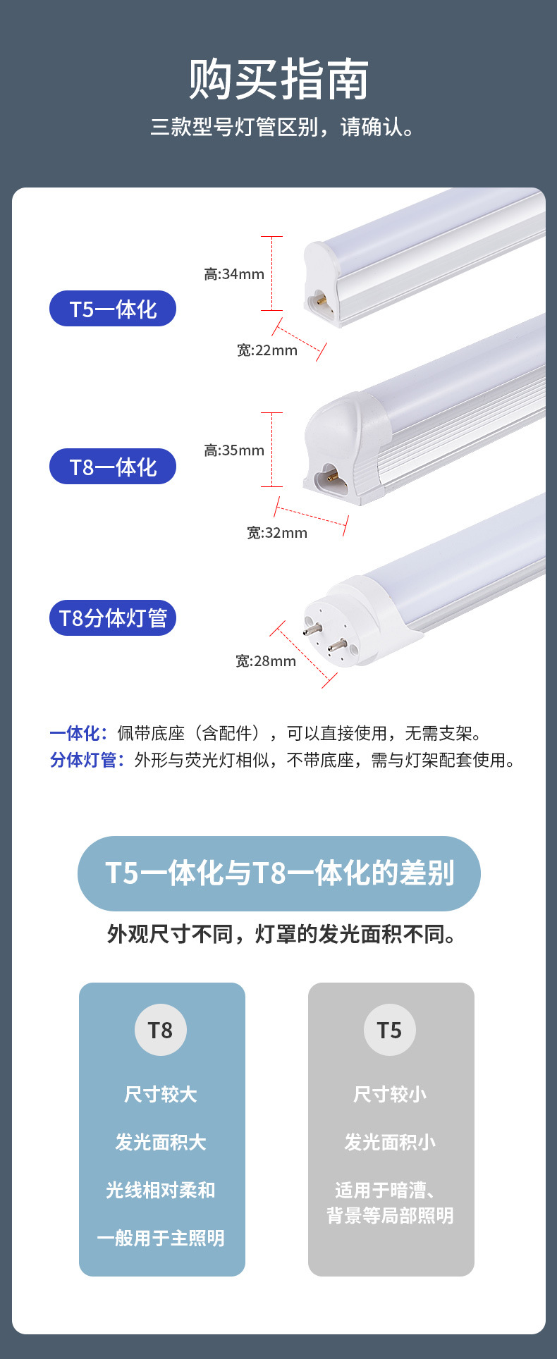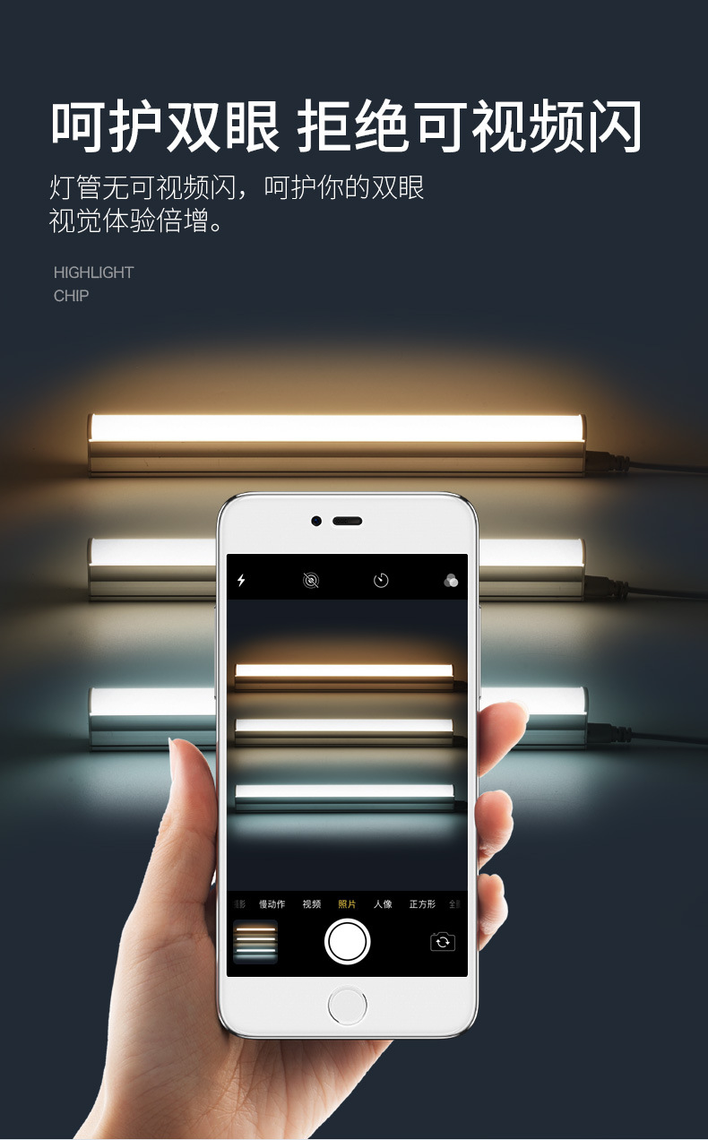 T5分体ランプLEDハイライト省エネランプ無ストロボ内蔵電源家庭用ホテル工事工場直販