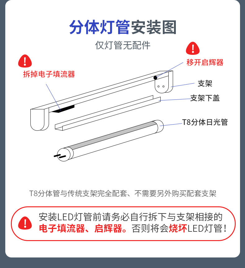 スポット T5 統合ランプ T8 分割アルミプラスチック LED ランプ超高輝度ブラケットランプ家庭用省エネ蛍光灯