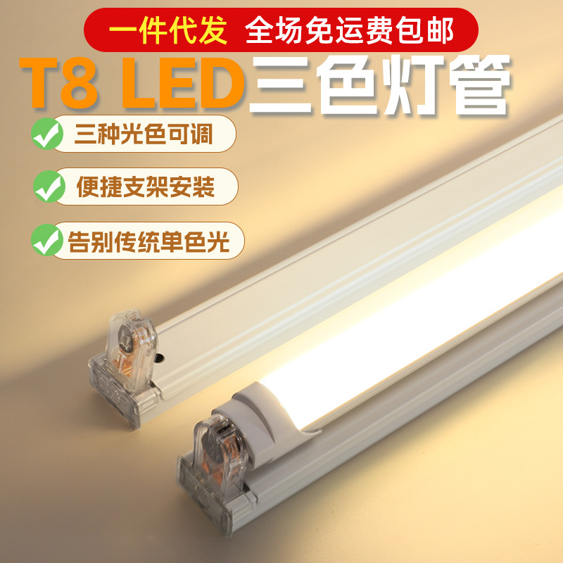 Led三色ランプt8変光調光調色長条客間寝室家庭用分体超亮省エネ蛍光灯