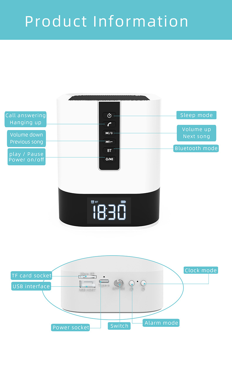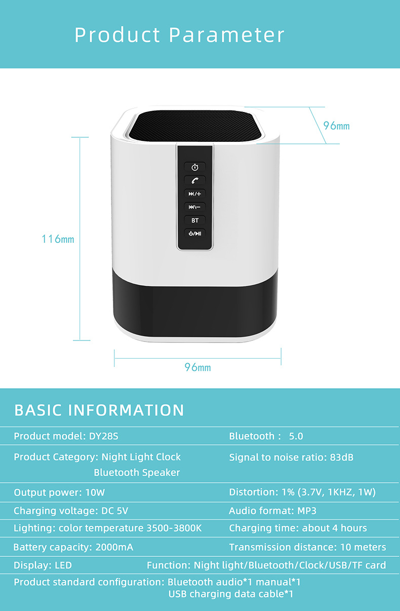 ムスキー人気商品 DY28S ベッドサイドタッチ式LEDナイトライト時計目覚まし時計 ワイヤレスBluetoothサブウーファーオーディオ