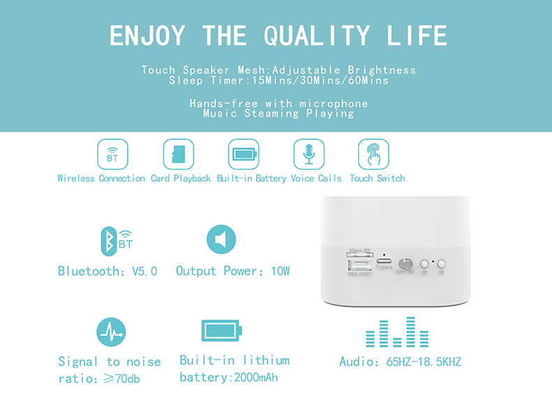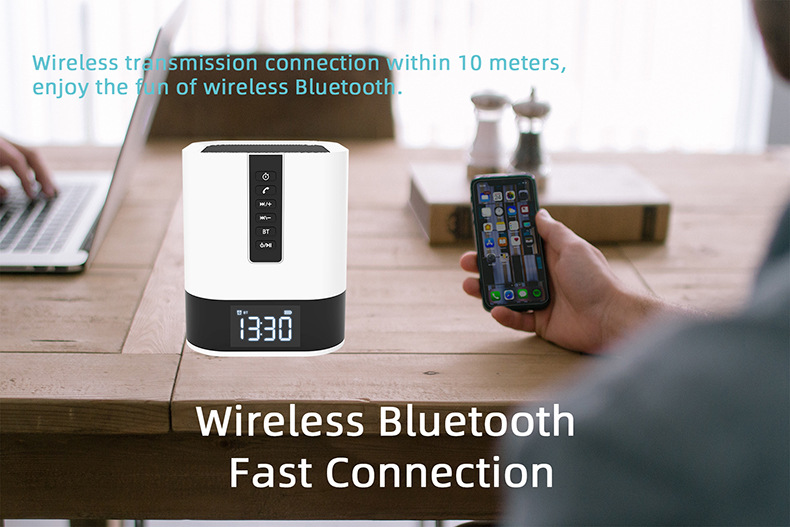 新しいワイヤレスbluetoothスピーカーライトは、カラフルなラケットライトをタッチして、時間目覚まし時計のタイミングを持っています。