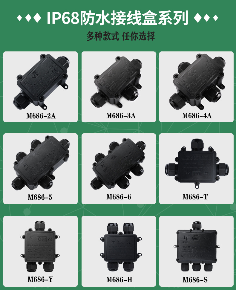 新品m686ジャンクションボックスm20一进一出ip68防水ジャンクションボックスled屋外照明ケーブル防水ボックス