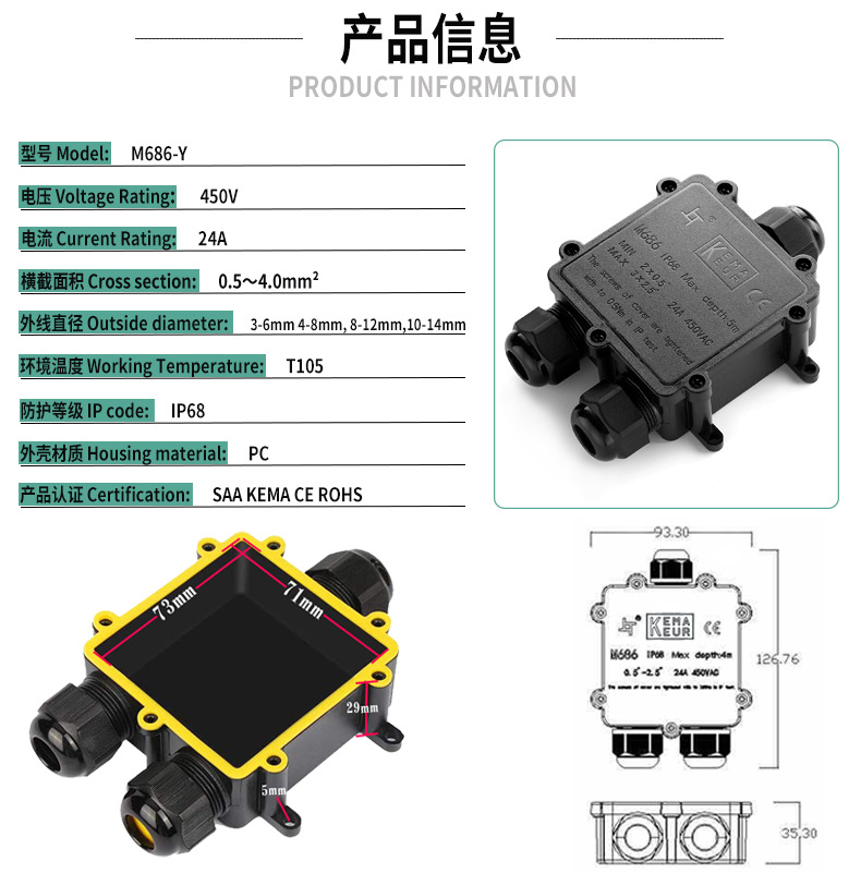 スポット卸売712三方ケーブル分割ボックスip68防水接続箱屋外三方ケーブル分割ボックス