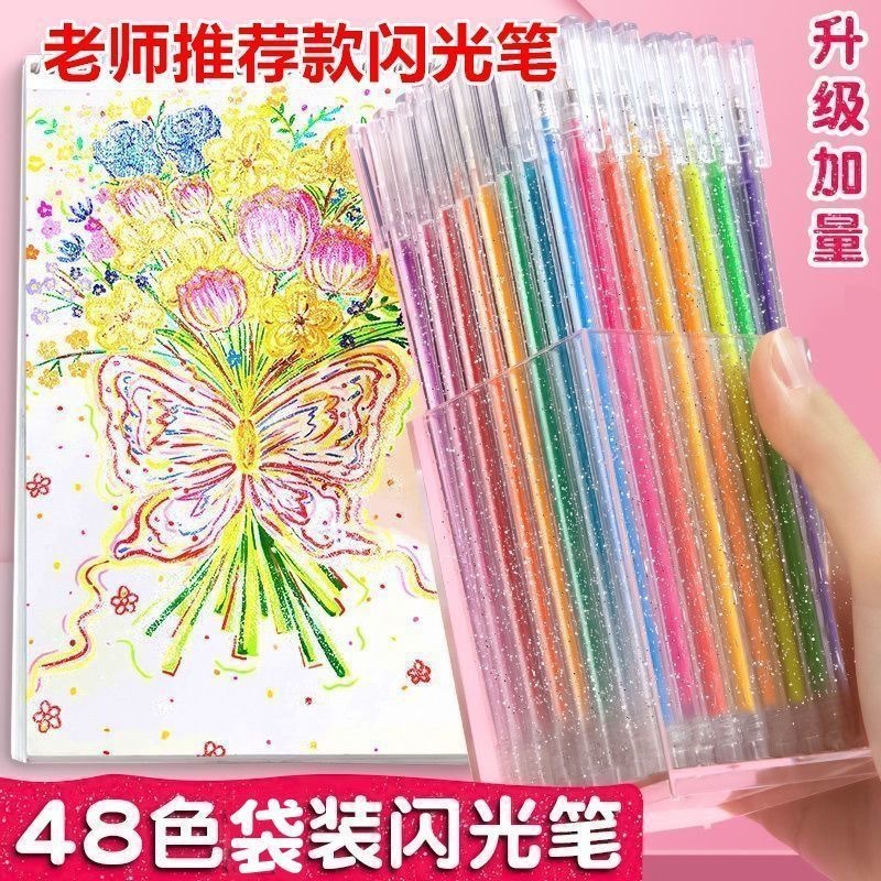 48色フラッシュジェルペンカラー手帳ペンdiy美術絵画ペン学生重点マーク蛍光ペン卸売り