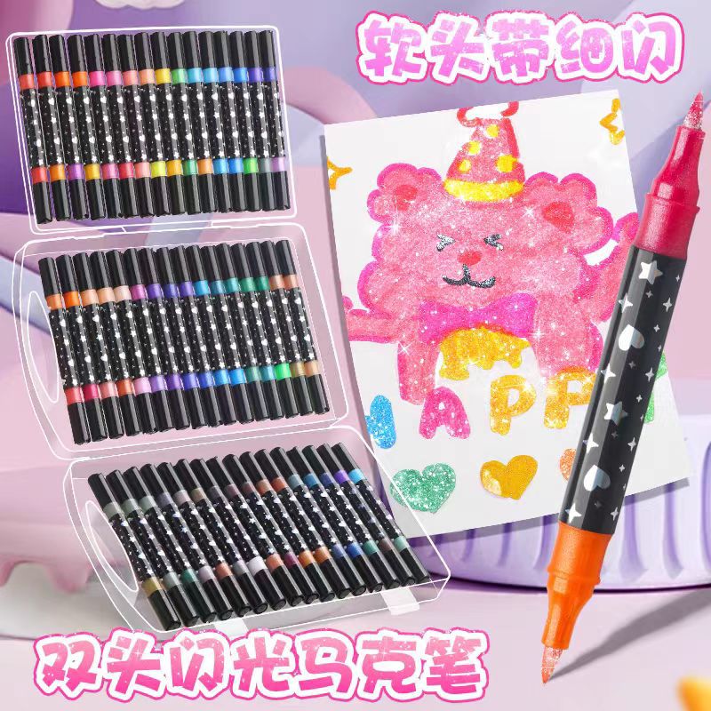 双头闪光马克笔珠光颜料儿童diy手抄报手账笔记彩色专用套装画笔