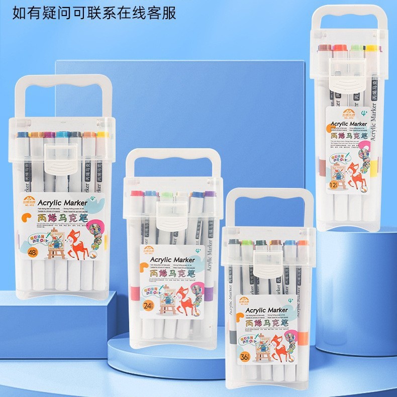 丙烯马克笔批发 儿童美术绘画防水叠色丙稀画笔48色丙稀DIY咕卡笔