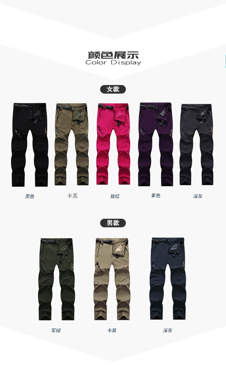 アウトドアカップル速乾ズボン夏の薄手男女スポーツ登山工装ズボンランニング防水修身速乾ズボン