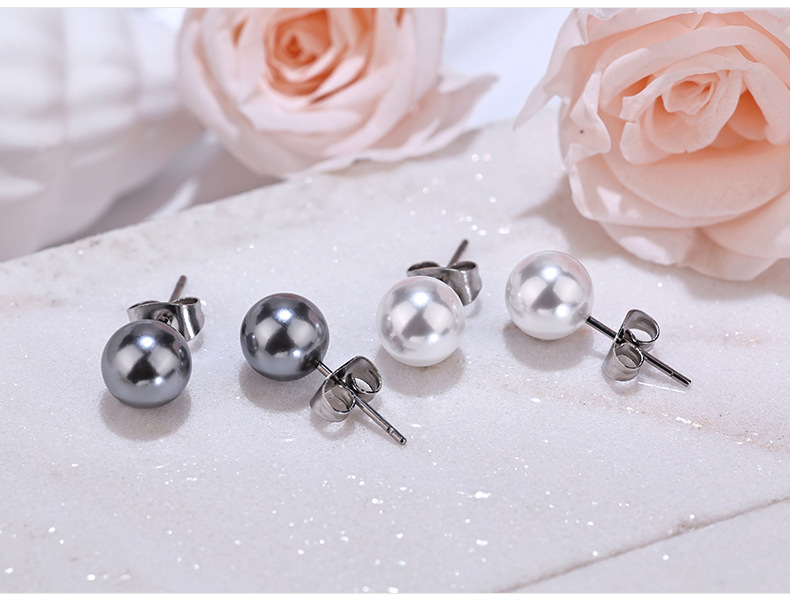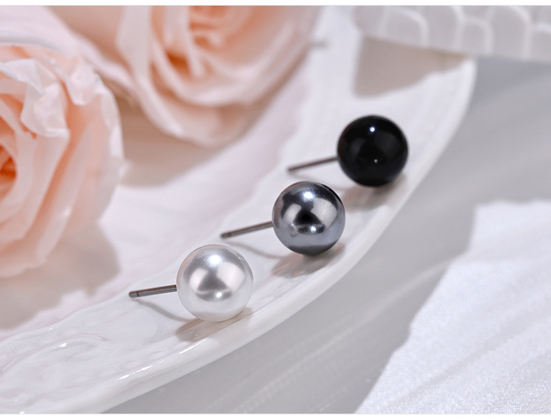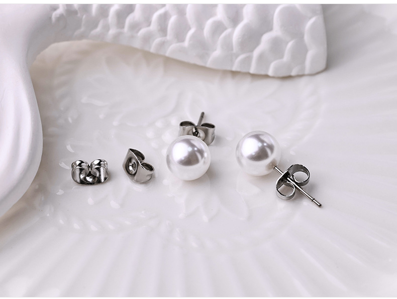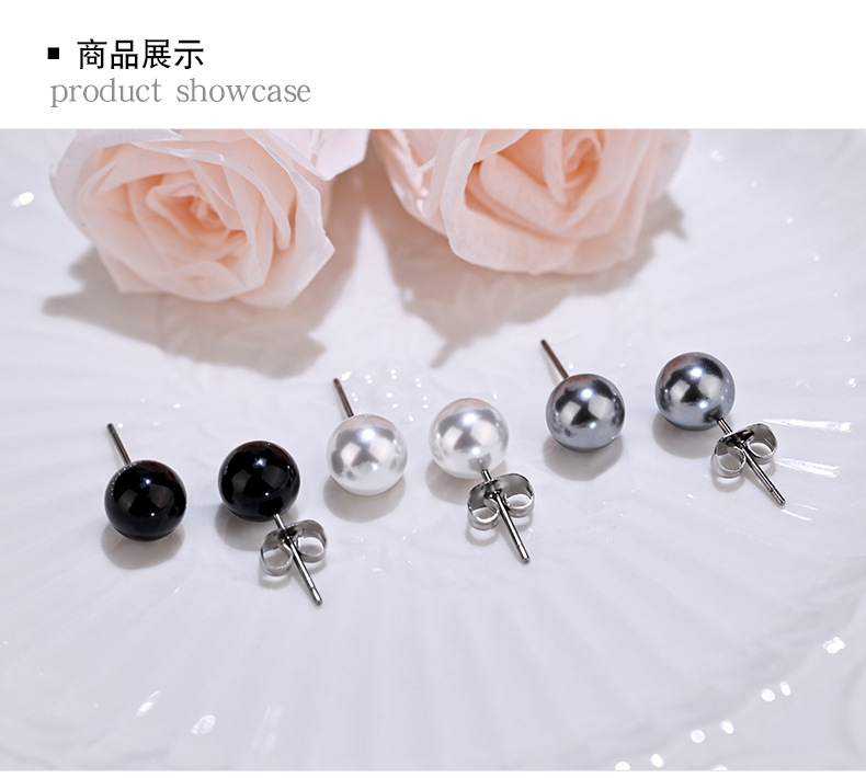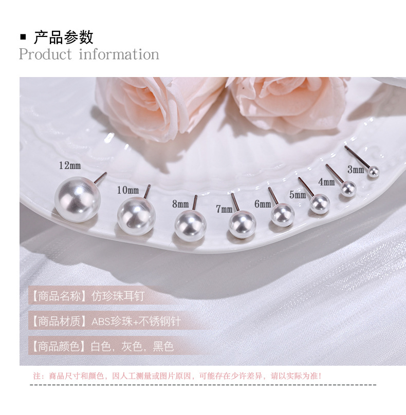 珍珠耳钉女简约小清新圆形仿真珍珠不锈钢耳环韩版时尚潮流小饰品