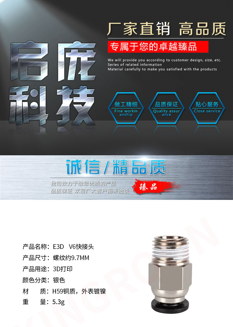 3D打印机远程送料管气动快速接头PC4-m6/01配件贯穿直通接头