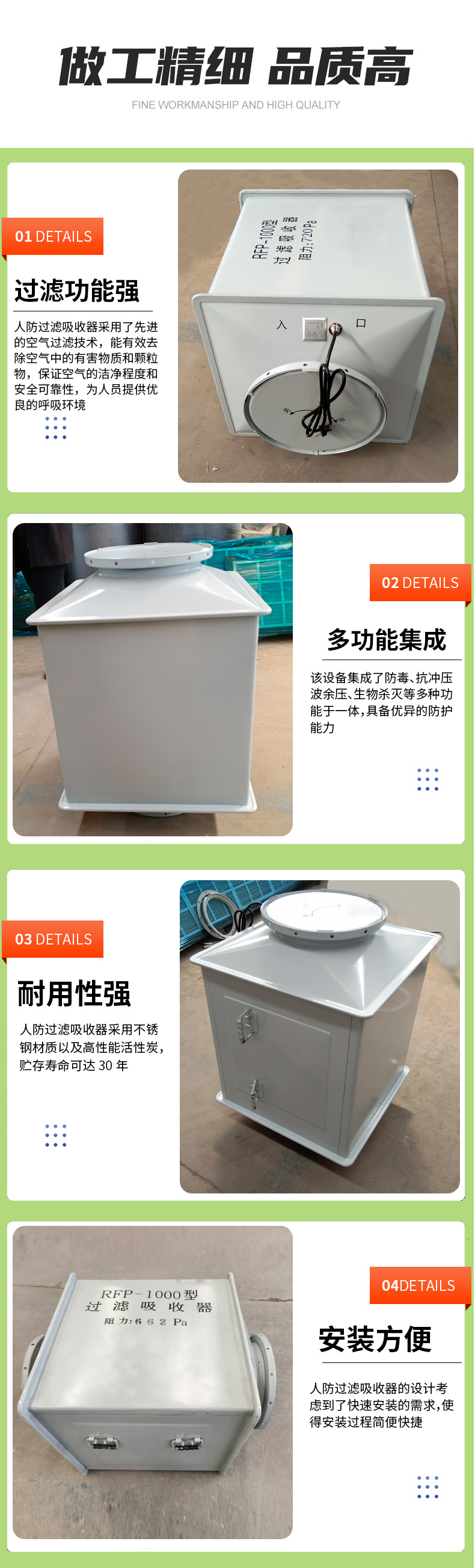 メーカー直営rfp-1000ステンレス人防フィルタ吸収器フィルタ吸収器チューブ式精密フィルタ