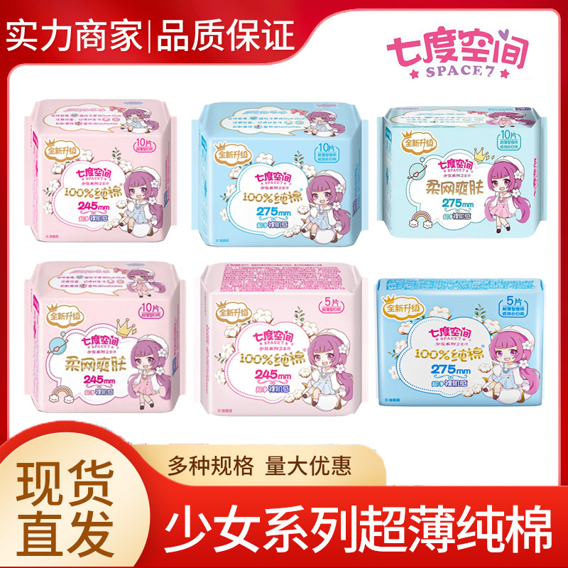 七度の空間の少女の軽薄で柔らかい綿の生理用ナプキンの箱は日用夜用の組み合わせでネットの柔らかいおばさんのタオルを詰めます。