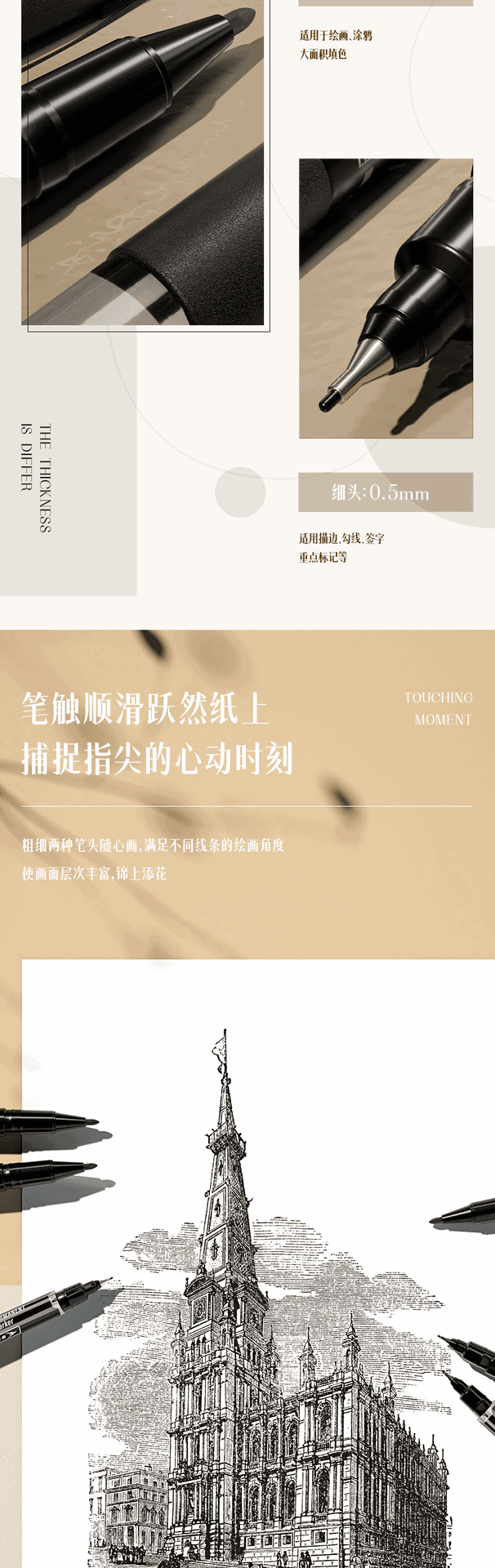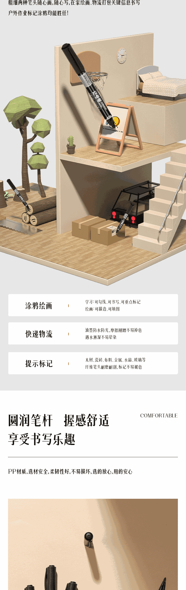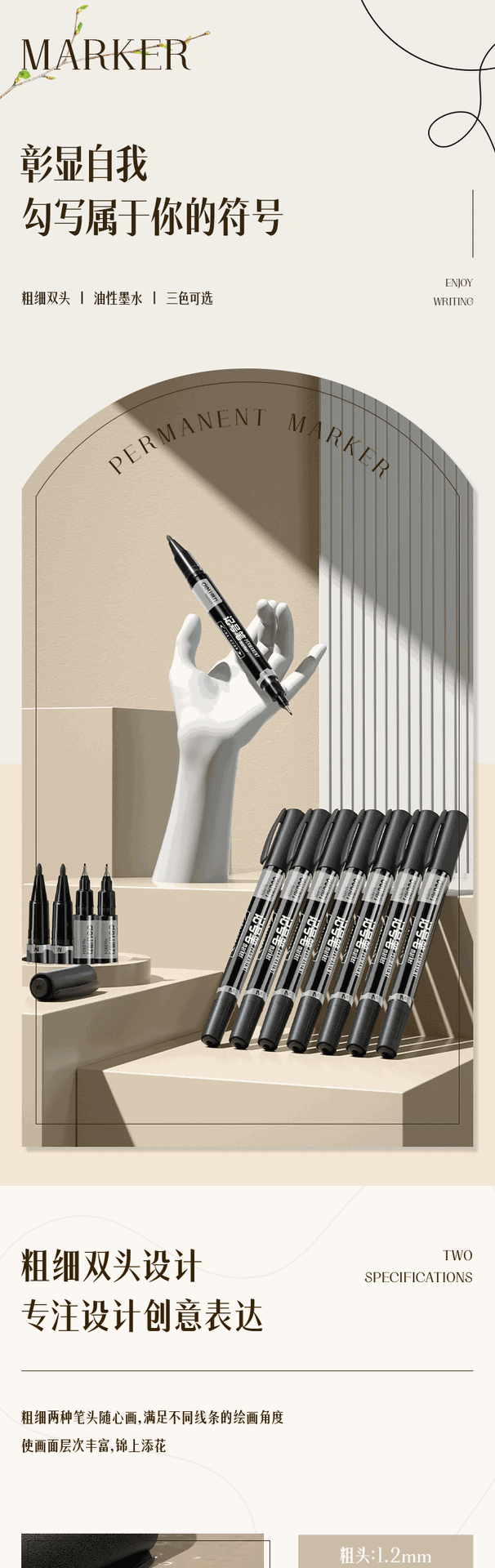 大促得力6824记号笔黑红蓝三色双头小号勾线笔学生美术快递标记笔