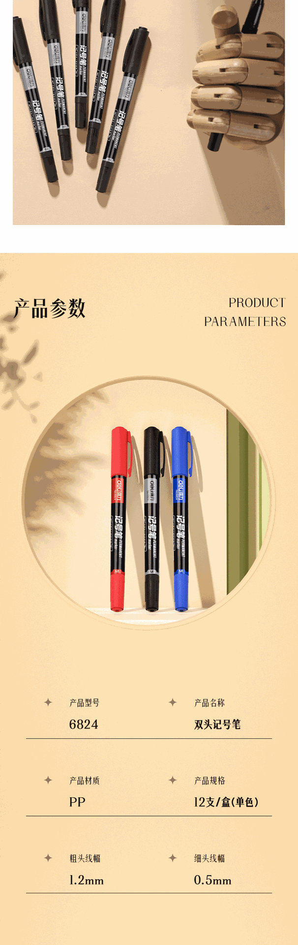 得力6824小双頭マーカーペン速乾線ペン油性インクペン滑り止めペンセットマークペン卸売り