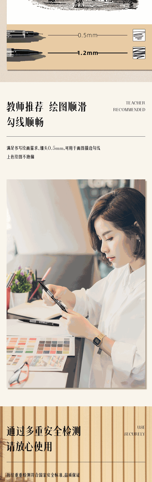 デリ両頭マーカーペン 黒油性ペン 線画ペン 美術専用油性サインペン 両頭ペン マーカーペン