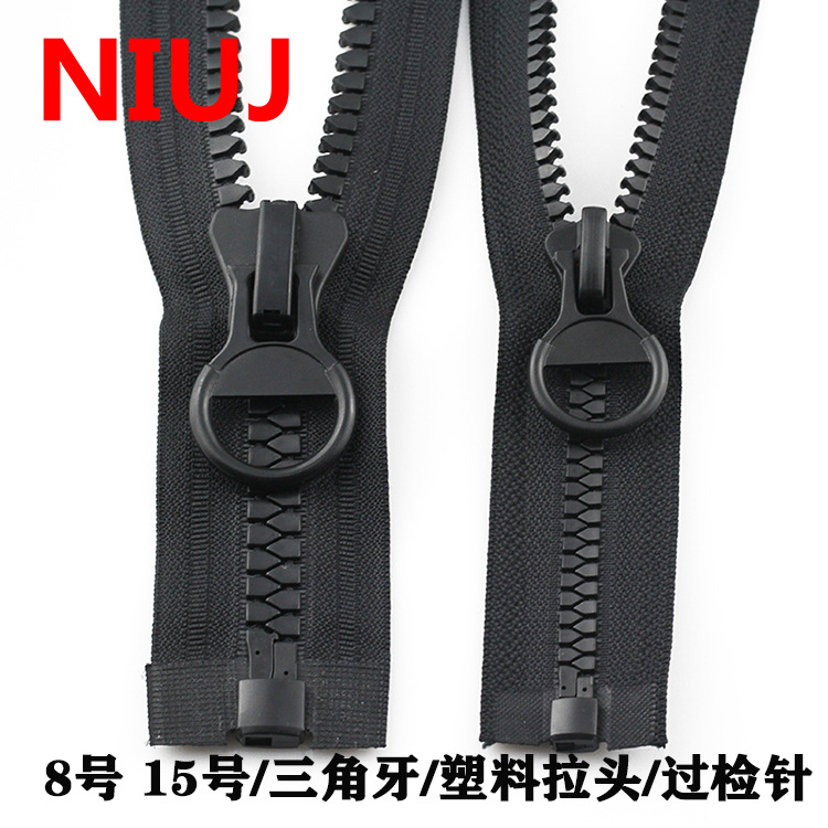 描述:15号树脂拉链,齿宽11mm 加厚款的布带总宽45mm,普通款的总宽40MM,非常牢固耐用,适用户外用品、睡袋、帐篷、箱包等产品上。