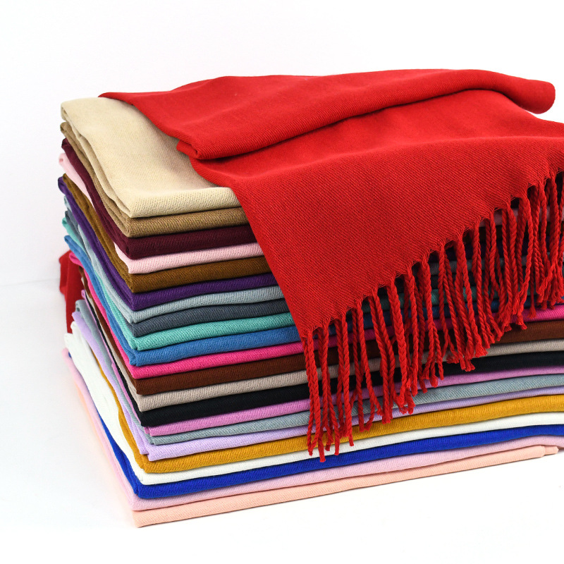 厂家秋冬红色年会围巾韩系保暖纯色百搭蓝色仿羊绒氛围感披肩批发