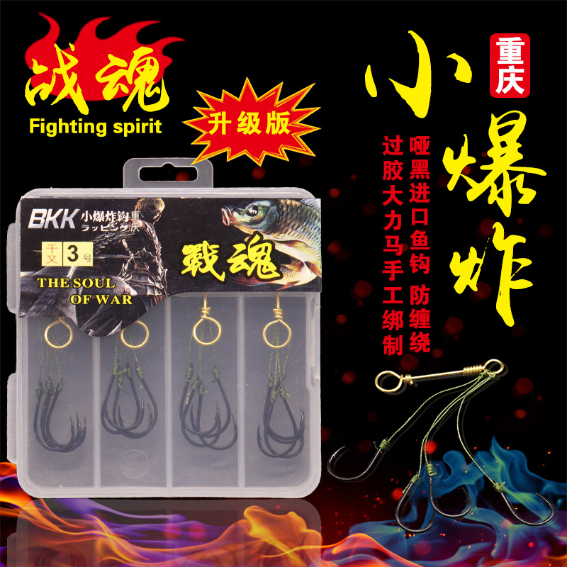 炸弹钩,也称爆炸钩,组钩、团钩,常见的有子母型、豆饼钩、飞钩。炸弹钩一般为6只一组,多为锦纶编织线作为子线扎制。其主要用抛竿沉钩底钓钓取个体较大的鱼类,是一种行之有效的钓钩。在面广水深的水库、湖泊等自然水域,深受广大钓迷的欢迎。