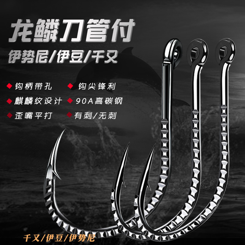 袖:此钩型无倒刺。钩尖锋利,钩柄长,钩条细钩身轻,适用于吸入取食的小型鱼种,快钓快取,多用于钓白鲫、小白条等。