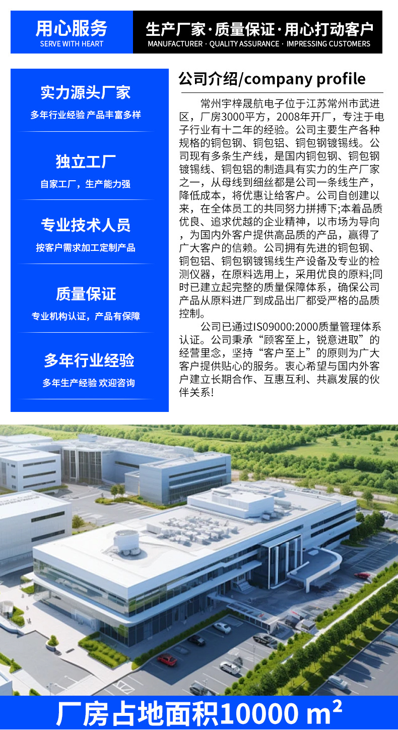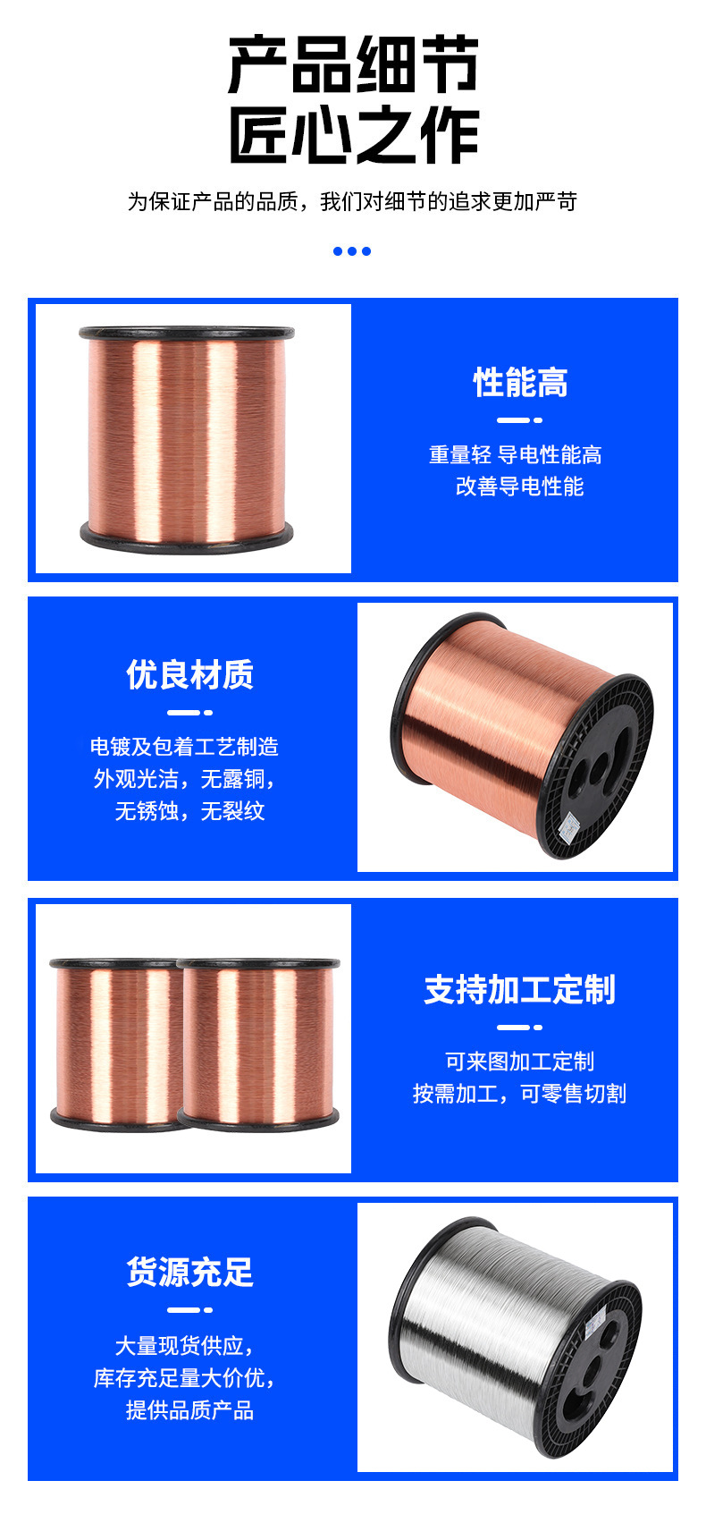 メーカーは0.10~2.0mmの銅被覆アルミニウム/銅被覆アルミニウム合金裸線と錫メッキ線を販売しており、在庫から卸売いたします。