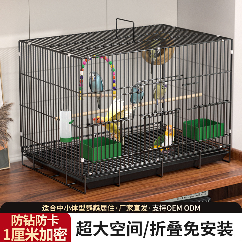 鸟笼虎皮鹦鹉鸟笼子玄凤文牡丹加密鸟别墅小珍珠小鸟专用折叠金属