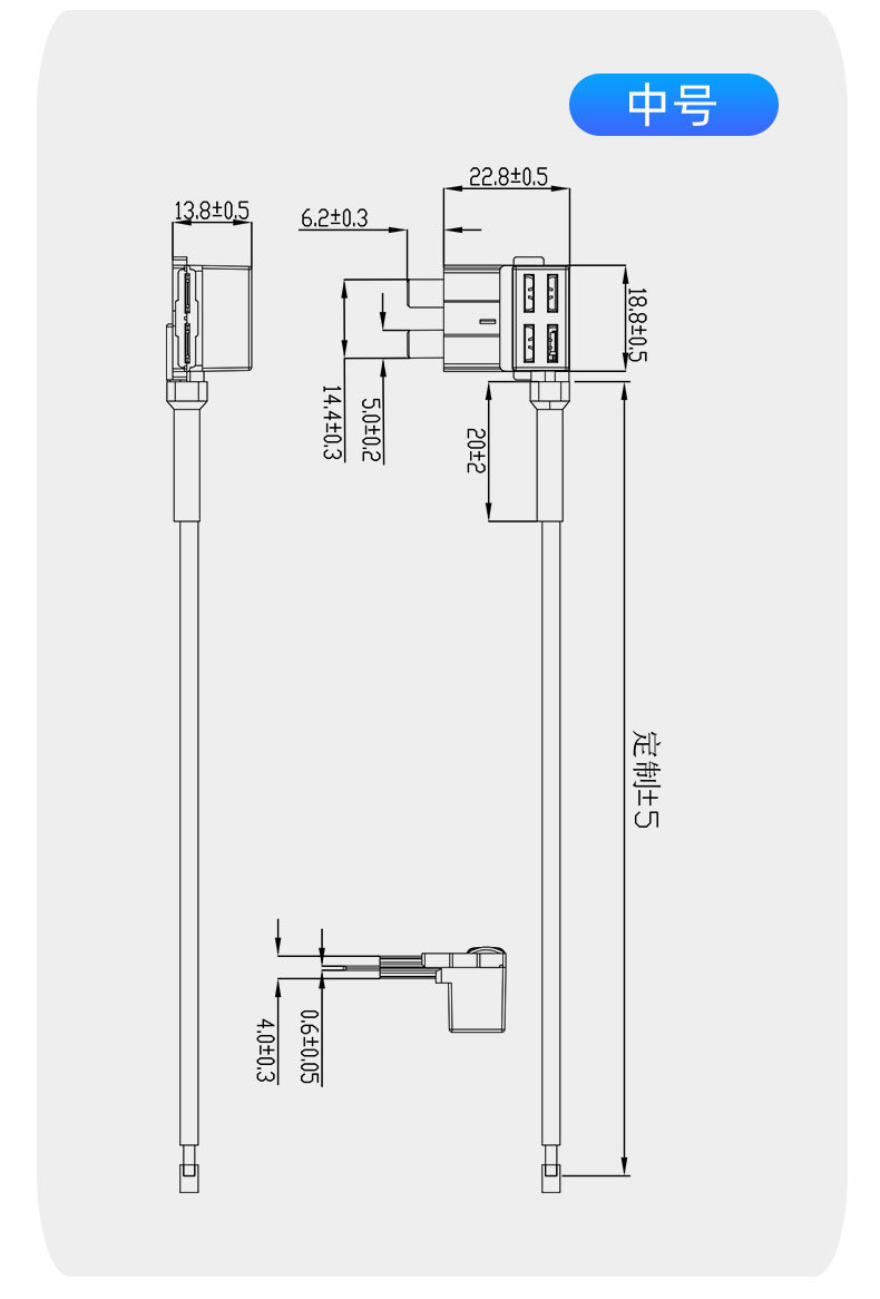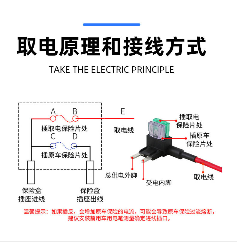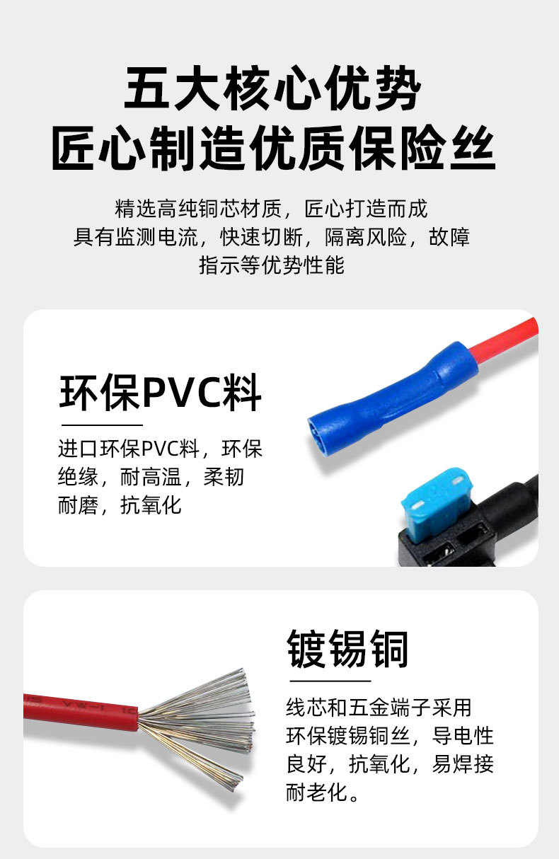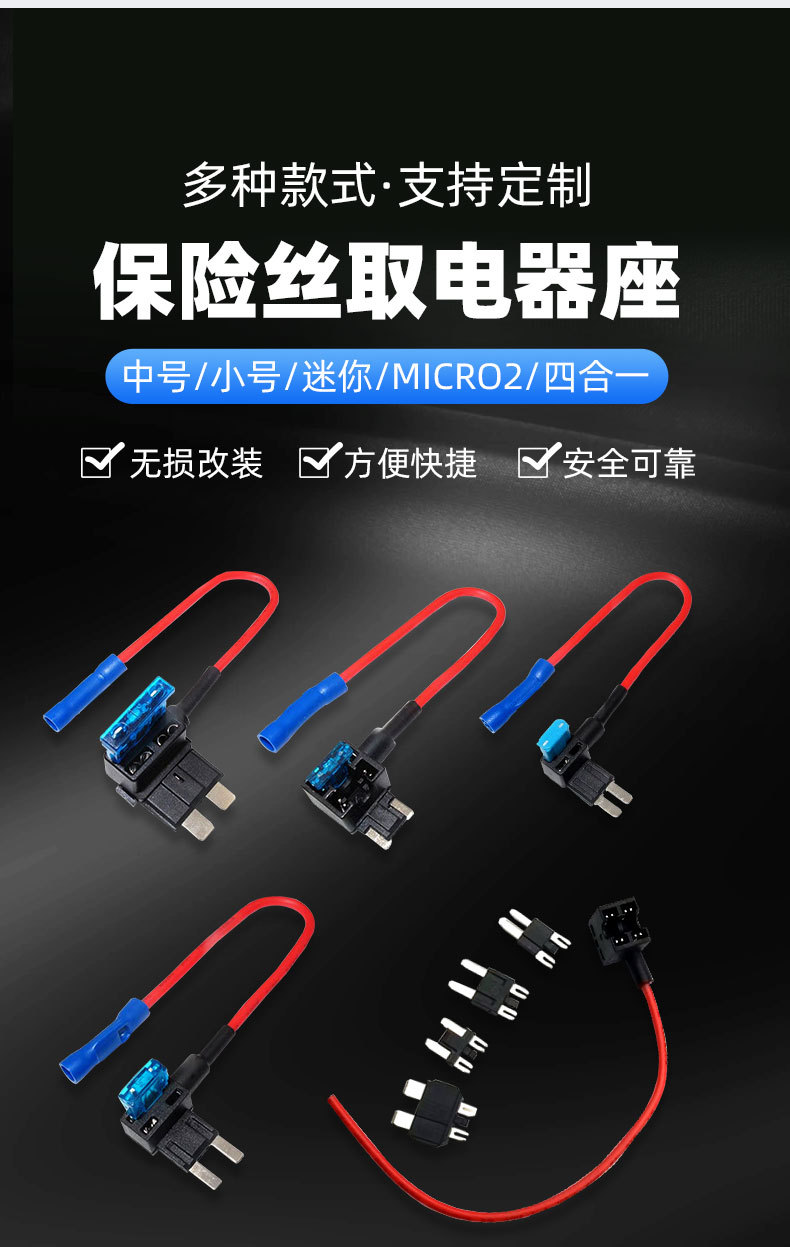 产品描述: 迷你取电器(#16 UL认证 1015 红色线,线长150MM,尾部子弹头母端)适配1A-30A迷你保险丝,连接中的价格不含保险丝