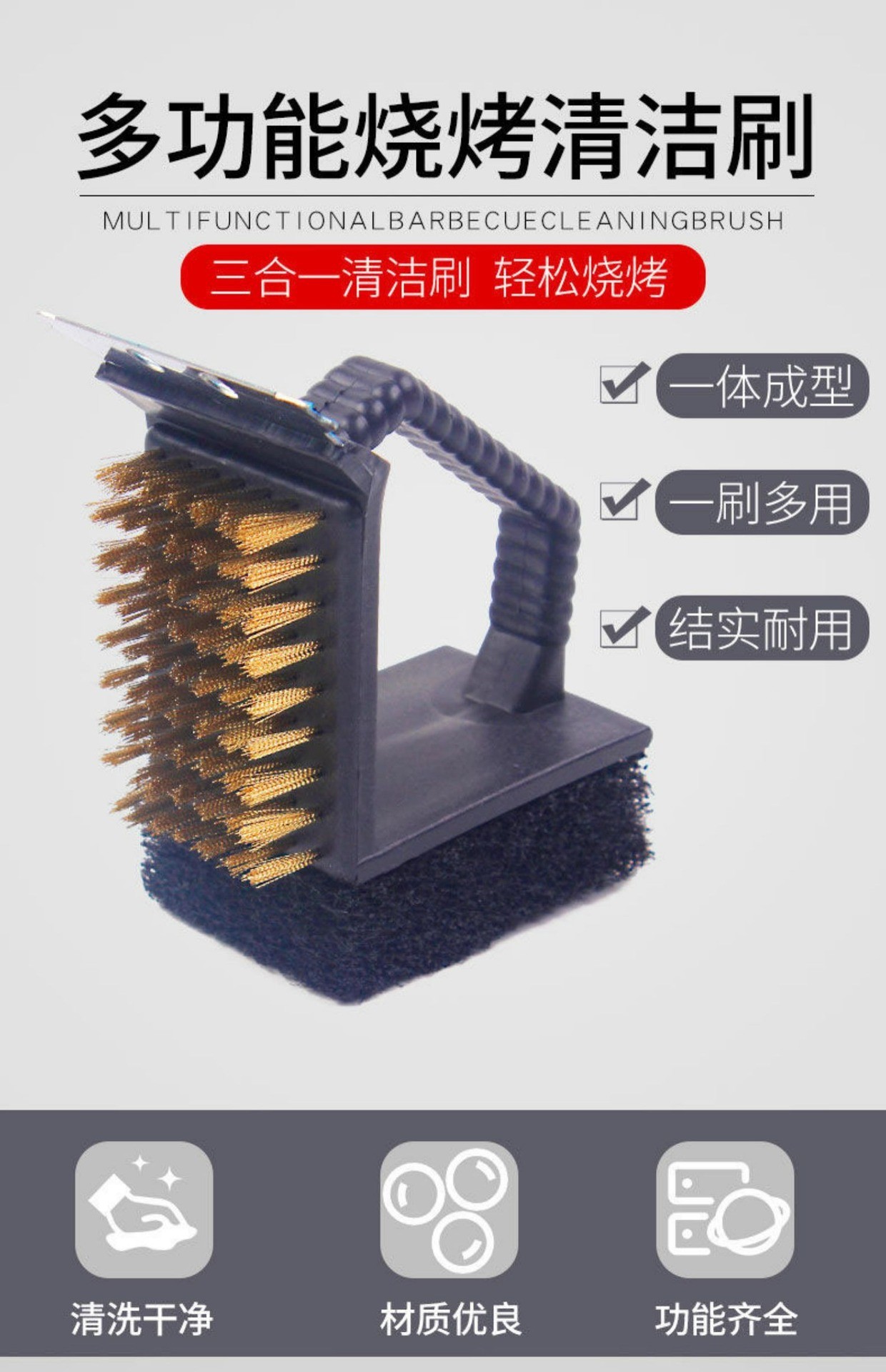 烧烤网清洁刷不锈钢铁丝钢丝刷子洗烧烤架烧烤炉钢刷便携清洗工具