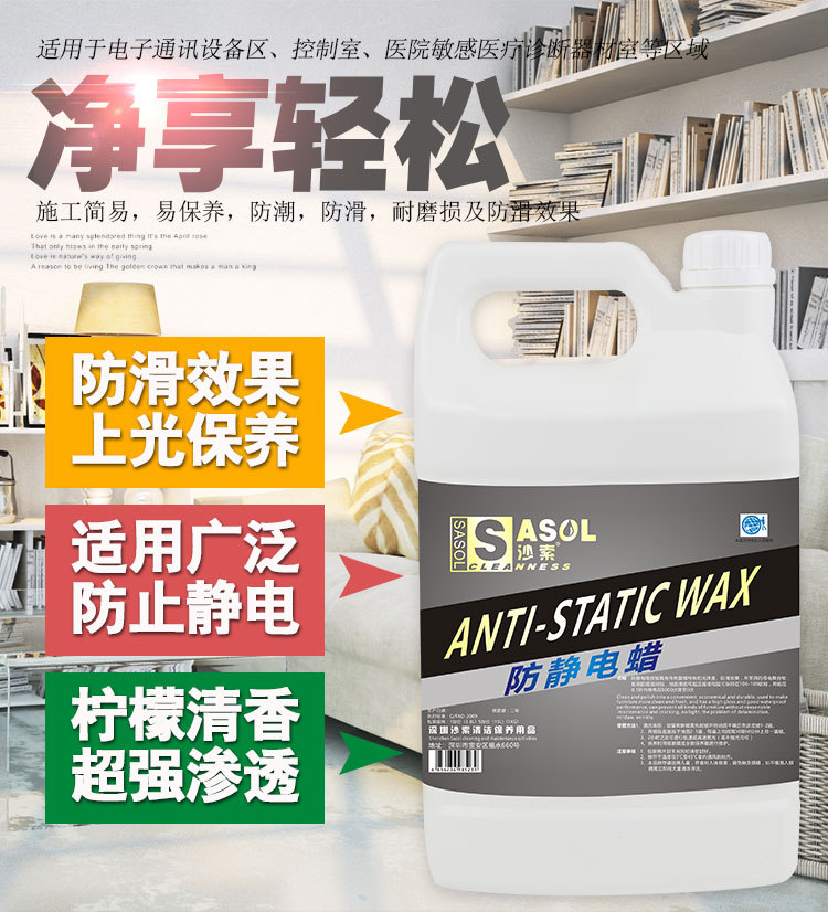 サソ 静電気防止ワックス 3.8kg 電子工場用 静電気除去床用ワックス 医療機器室用 床用静電気防止ワックス
