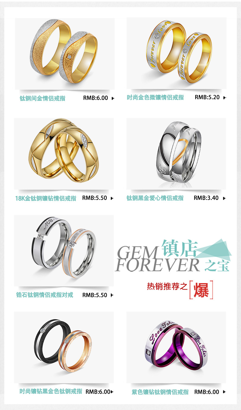 国境を越えて人気のある新しいステンレスアクセサリーファッション18k男性女性指輪カップルチタン鋼指輪