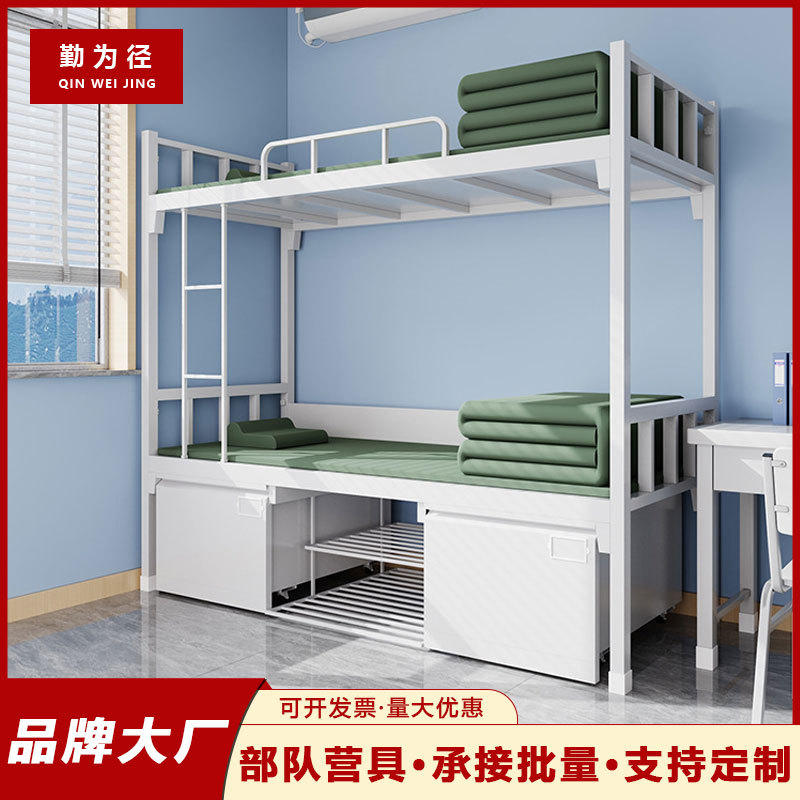 二段式鉄製ベッド、厚型、学校寮用、キャビネット付き、従業員アパート用、高さ調節可能、鉄製ベッドメーカー