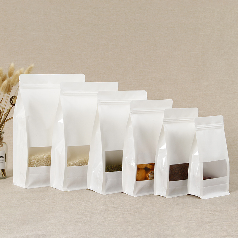 メーカー直供白クラフト紙開窓フロスト茶葉自封袋乾燥果ナツメ五穀雑穀包装袋