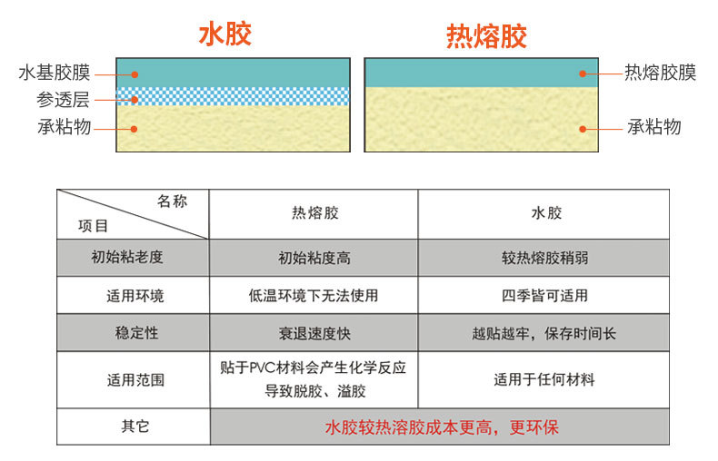 接着タイプを使用する 水性接着剤、ホットメルト接着剤