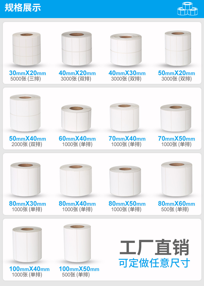 三防感熱ラベル紙防水防油防傷服装吊り札ステッカーバーコード印刷空白シール