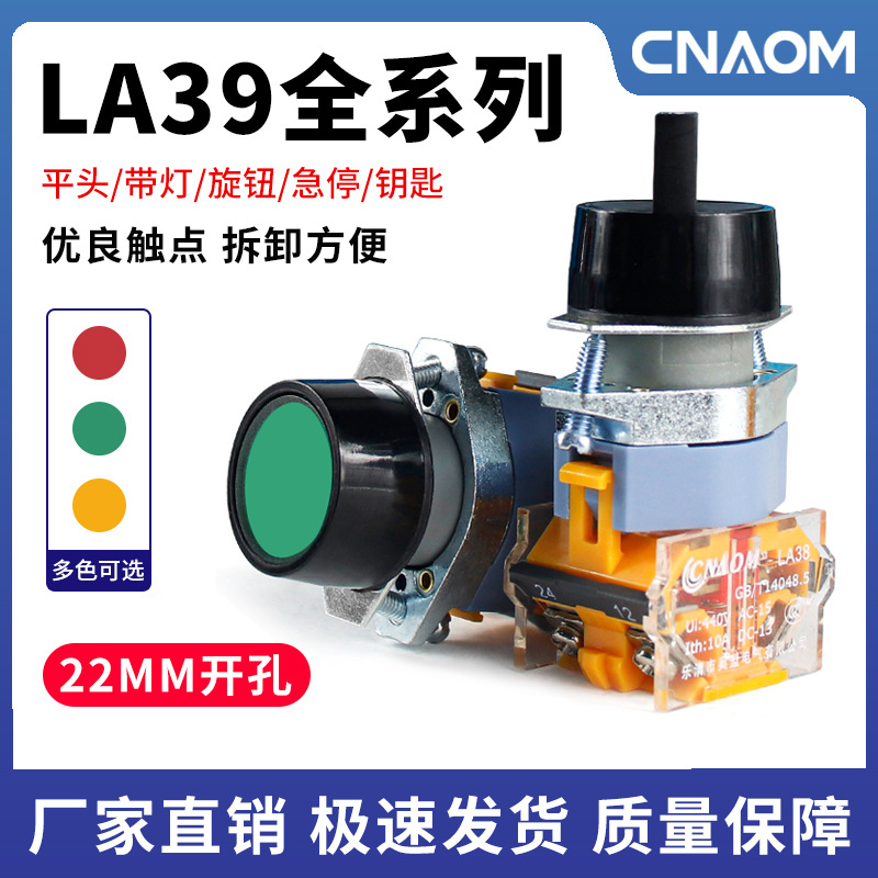 La38平頭押しボタンスイッチ字付記号セルフロックセルフリセット円形一常開常閉22mmスタート停止
