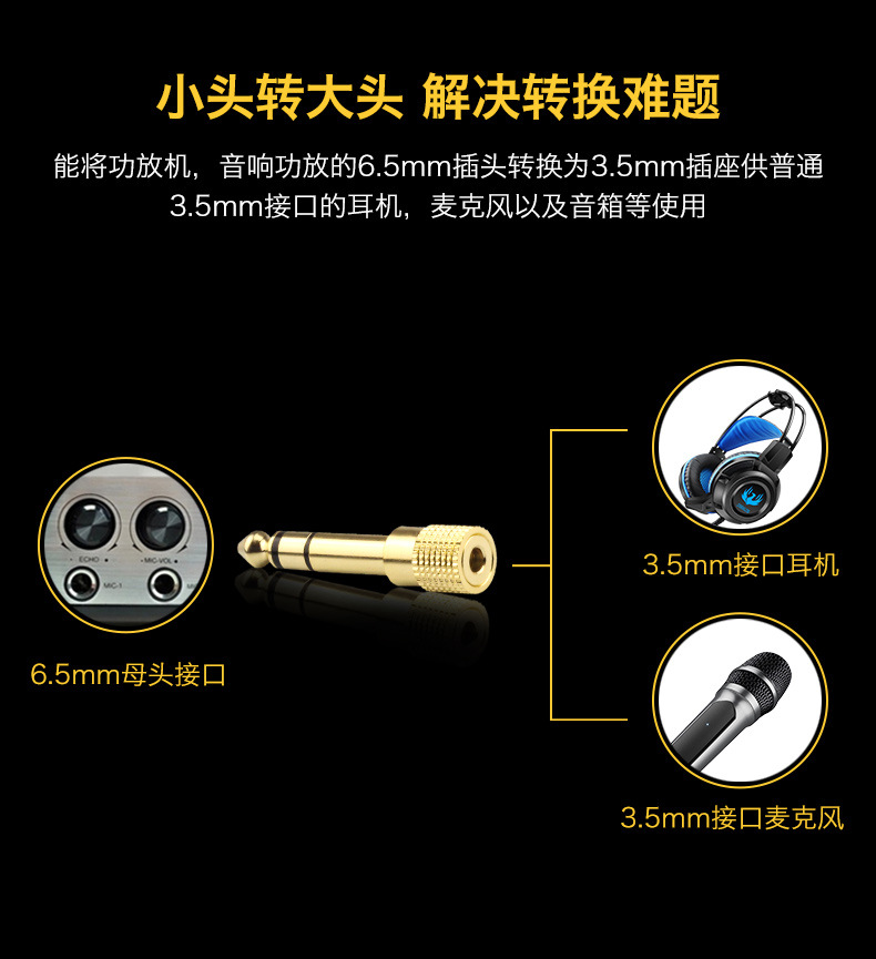 歌韻6.5回転3.5変換ヘッド6.5mm回転3.5mm雄メスプラグイヤホンマイク音声変換器