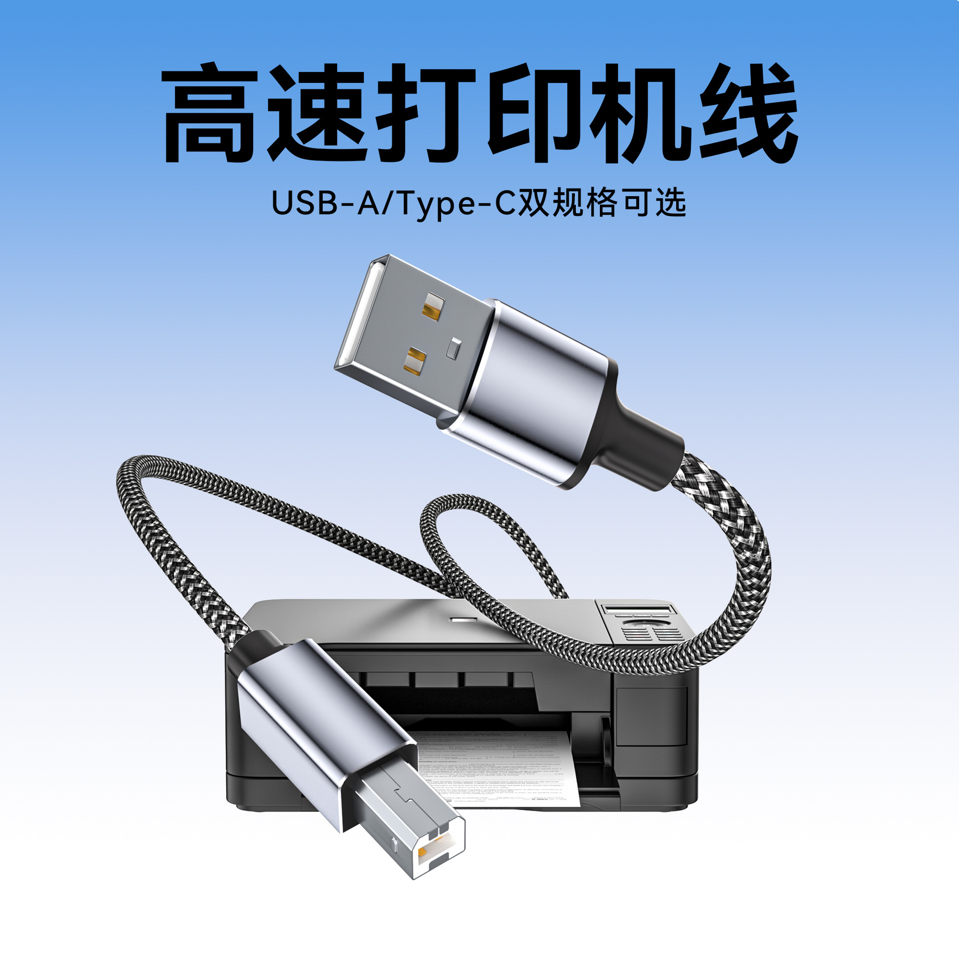 歌韵新品打印机数据线适用手机电脑笔记本typec转方口 打印机线