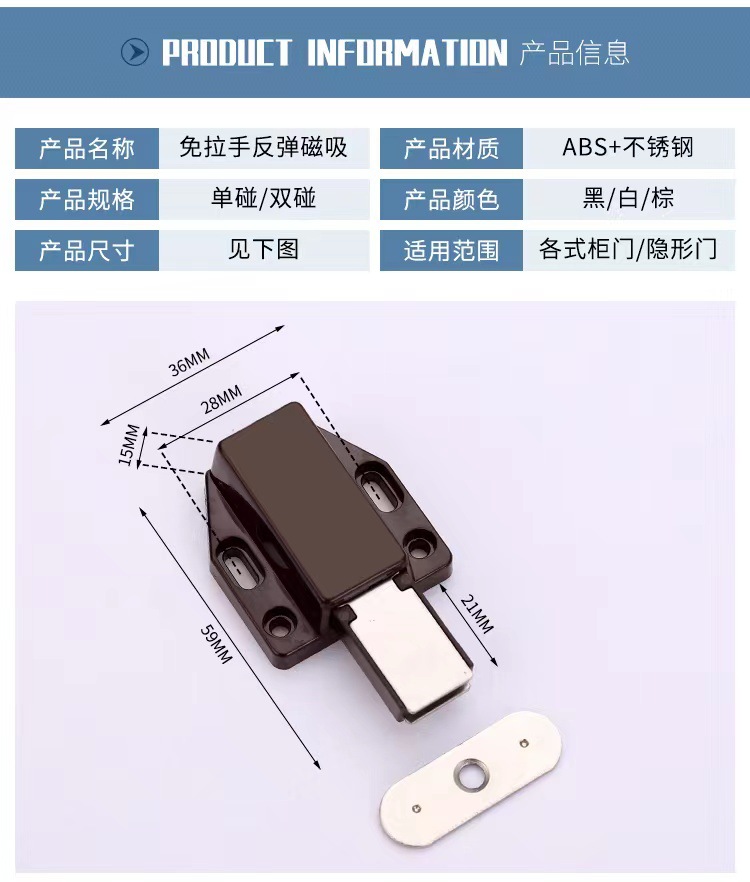 大型リバウンド単接触磁気吸引キャビネット磁気吸引キャビネットドア磁気接触単二重ドアガラス磁気吸引二重ドア磁気吸引