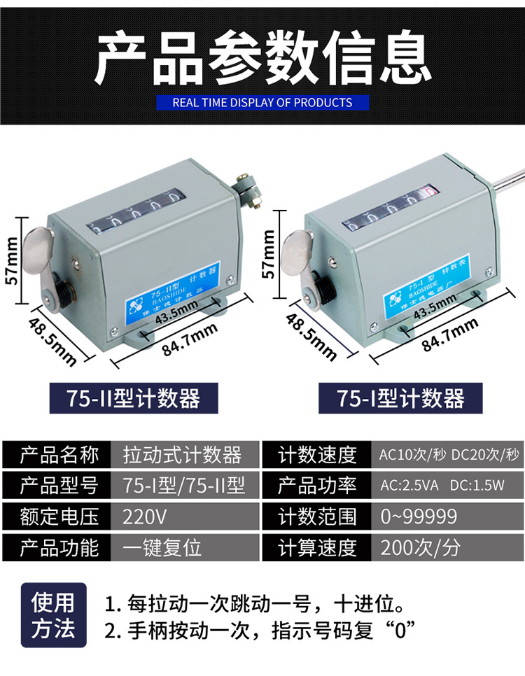プレス機械式カウンターD-70手動記録器プル式工業回転数計ワンキーリセット計米器