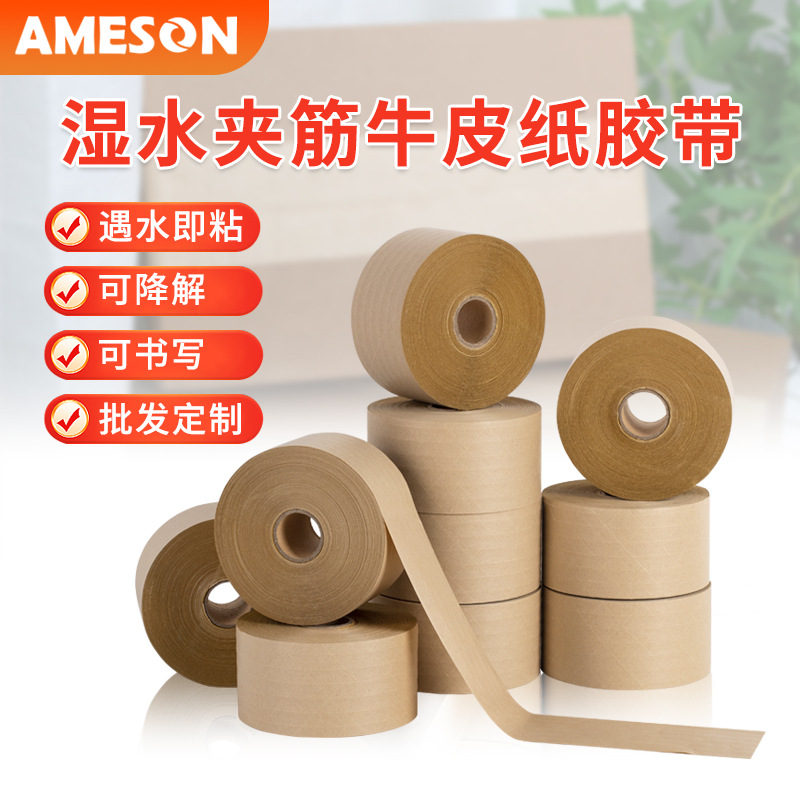 クラフト紙のテープは水を含まずに自己接着します。