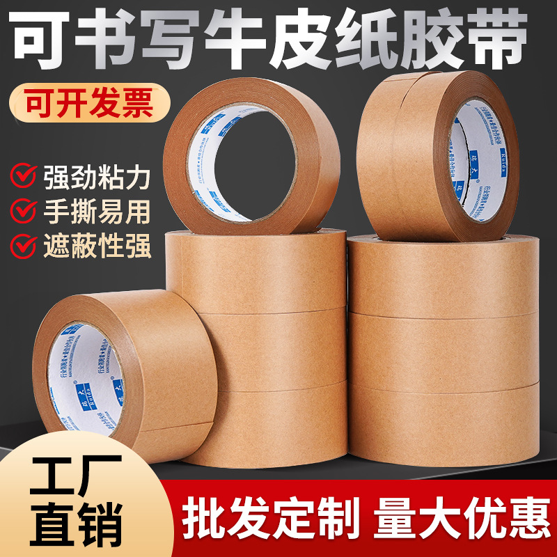 牛皮纸胶带免水可降解书写高粘手撕胶带 相框打包封箱牛皮纸胶带