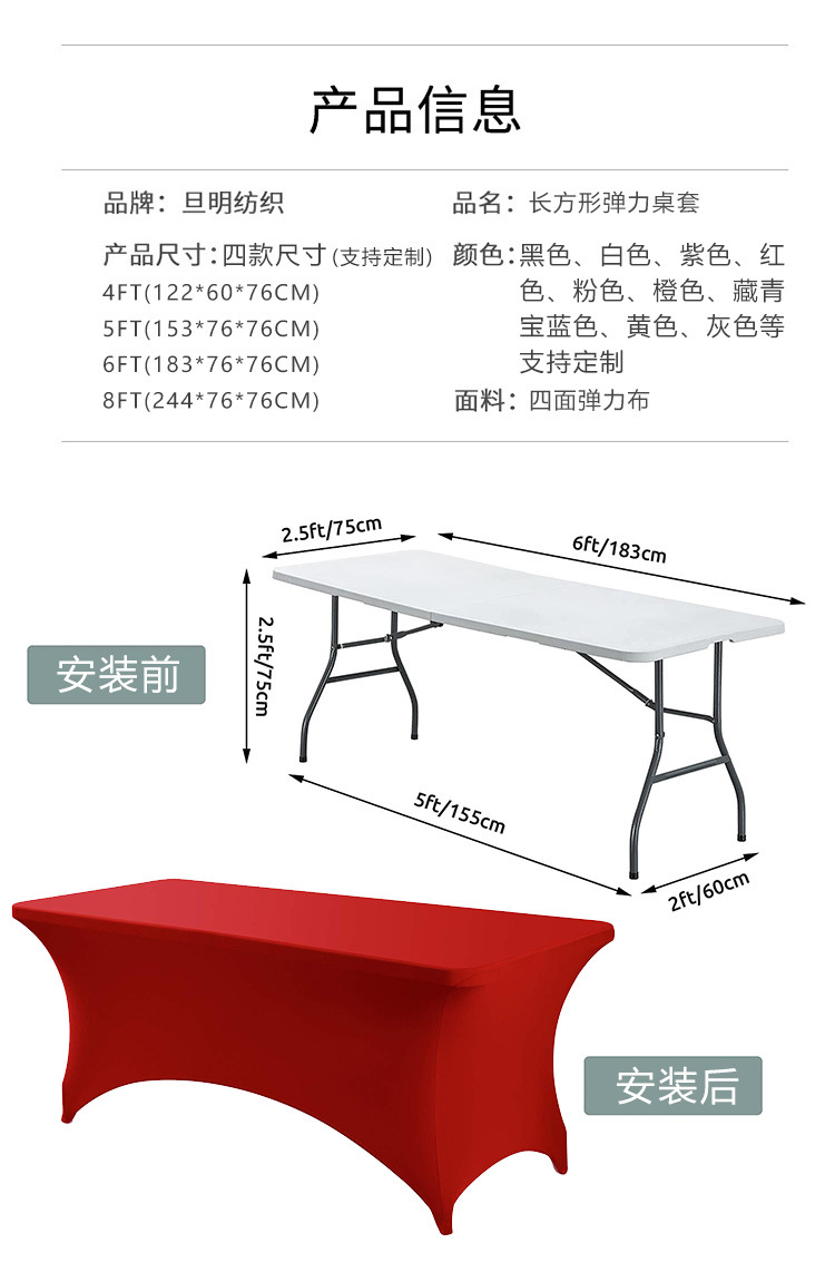 4FT6FT 外国貿易弾性テーブルカバーカクテルテーブルカバー会議結婚式宴会長方形テーブルカバー弾性テーブルクロス