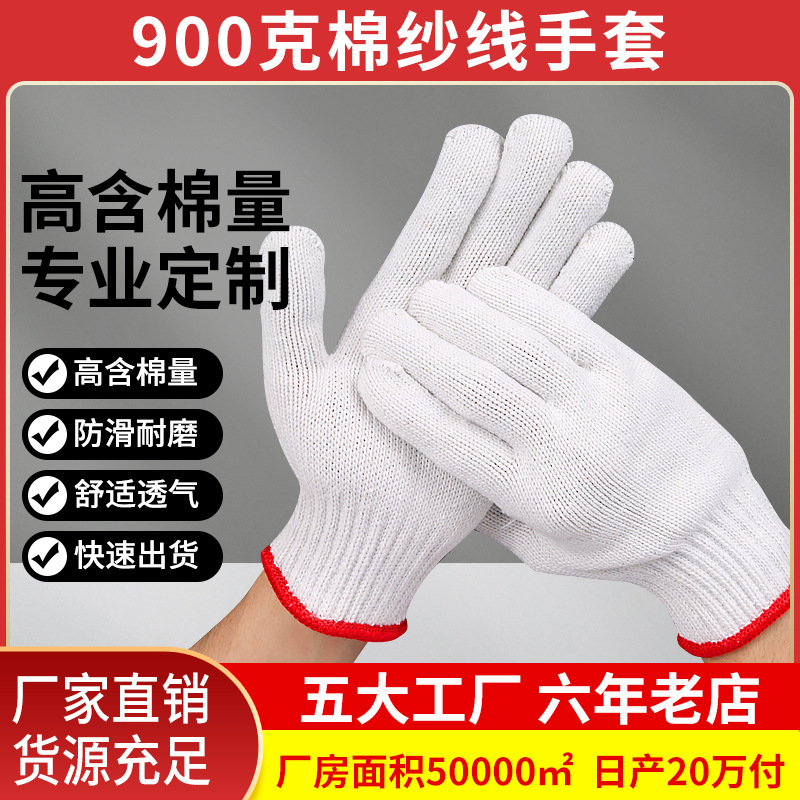 綿糸手袋600グラム卸売り十針漂白毛紡織労働保護綿糸手袋厚い耐摩耗防護手袋