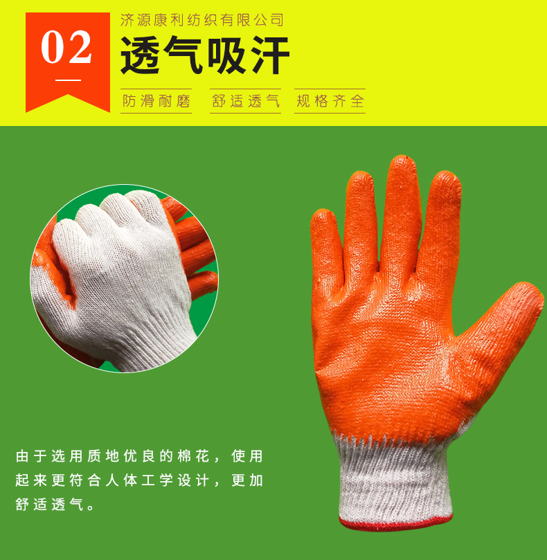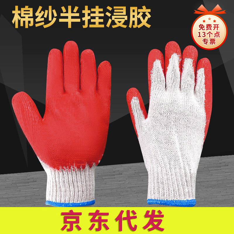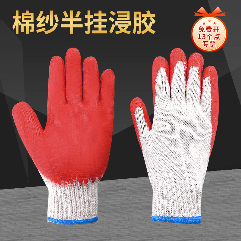 労働保護手袋包郵便点ゴム手袋ラテックス耐摩耗性十針綿糸防護滑り止め漂白毛紡織点プラスチック手袋