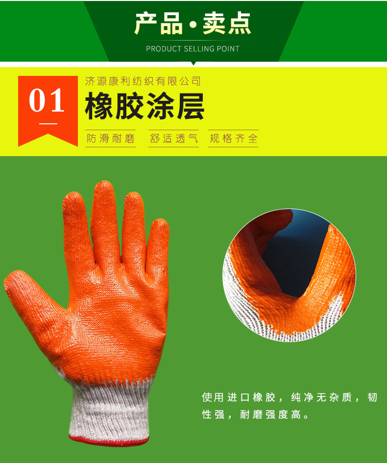 綿糸ゴム手袋労働保護糸ゴムゴム平ゴムコーティング滑り止め耐摩耗性作業防護