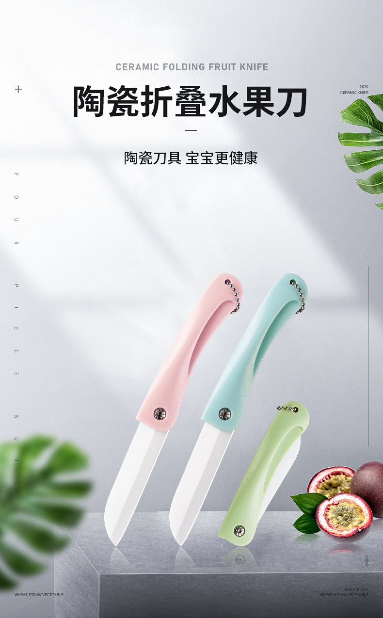 陶瓷水果刀家用厨房刀子钥匙扣折叠小刀迷你随身削皮便携小水果刀